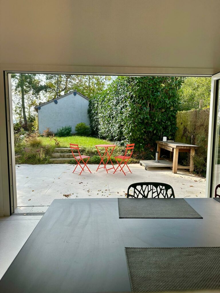 Avec cette grande baie vitrée qui s’ouvre complètement, c’est un vrai bonheur d’être là.