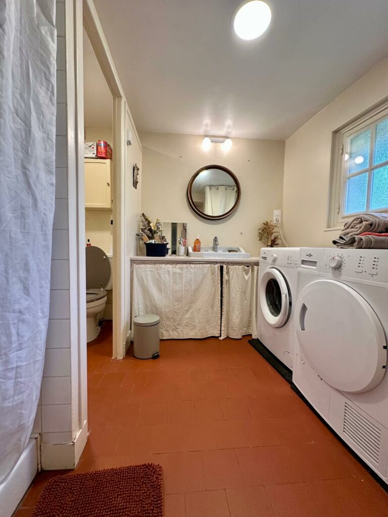 Concernant la Salle d’eau, vous remarquerez qu’un lave linge et un sèche linge sont à votre disposition.